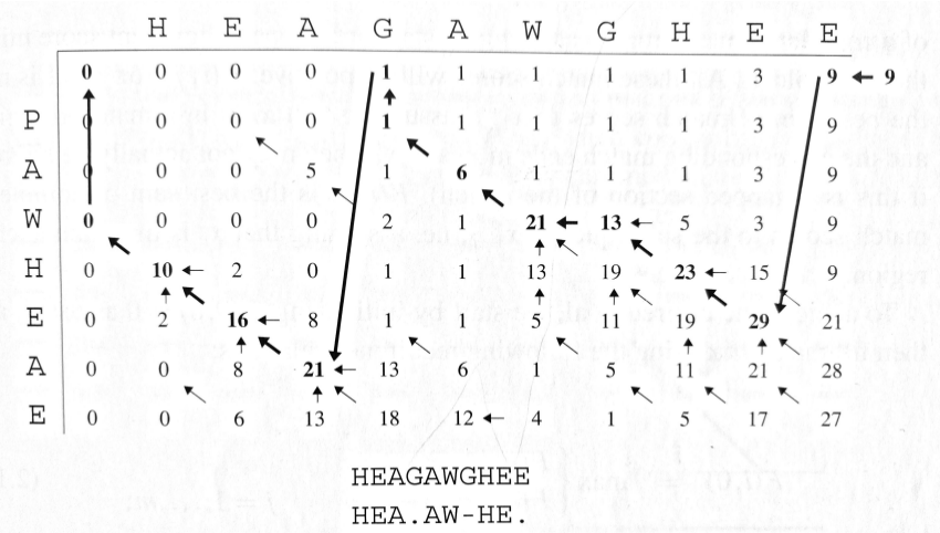 \begin{align*} Y &= (y_1, y_2, \ldots, y_n)\\ X &= (x_1, x_2, \ldots, x_m) \end{align*}Define $F(i,j)$ (for $i\geq 1$) to be the best sum of match scores in